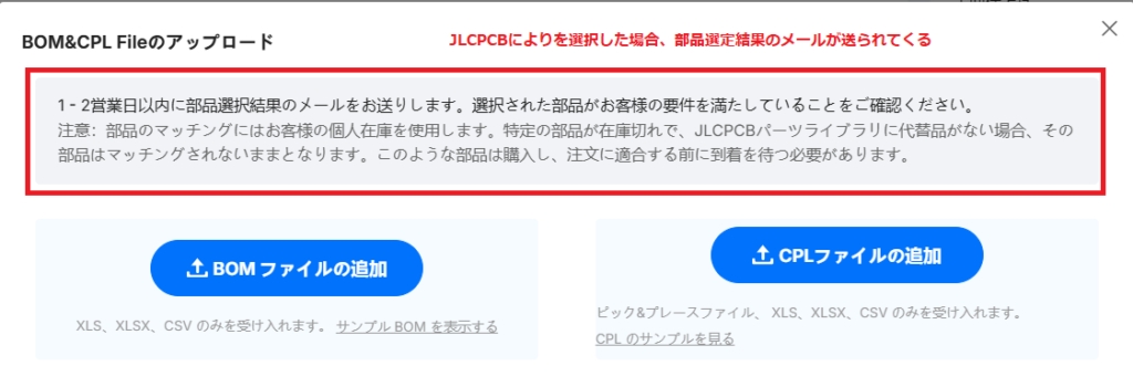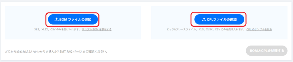 BOMファイルとCPLデータ(部品配置座標図)のアップロード