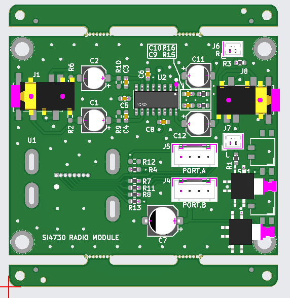前回のブログでご紹介しましたSi4730搭載ラジオモジュールのオーディオ信号レベルはイヤホンを鳴らす程度には十分な出力ですが、スピーカを鳴らすには十分とは言えないのでラジオモジュールを実装できるオーディオアンプ回路基板を製作しようかな?と考えていたタイミングでJLCPCBさんよりコラボレーションでのご協力を頂けることになったため、アンプ搭載基板製造と基板アセンブリをお願いすることにしました。