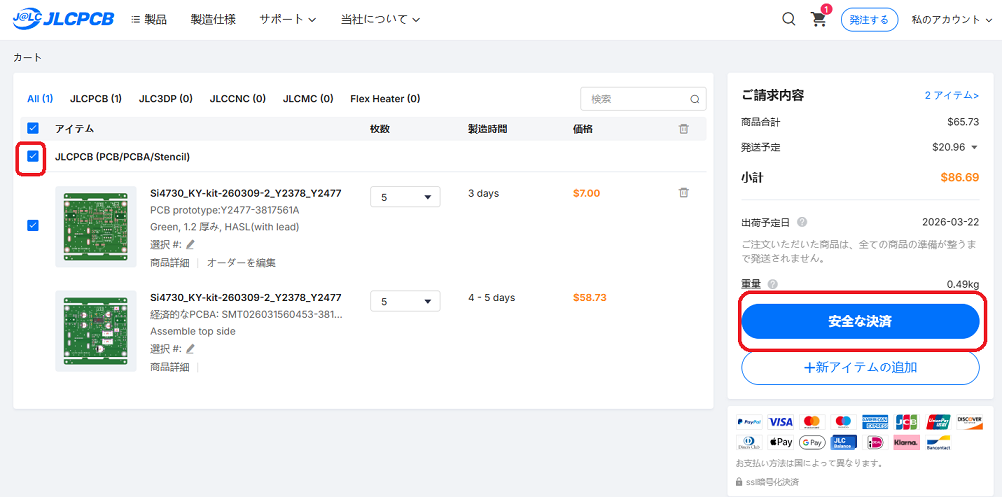 JLCPCBさんでのPCBアッセンブリの発注フロー
