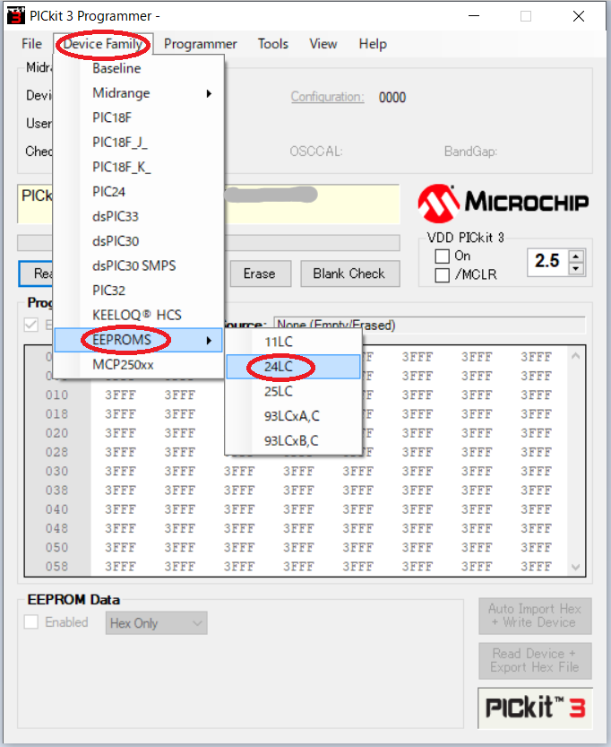 - PICkit3 Programmer V3.1(または類するEEPROM書き込み用プログラム)