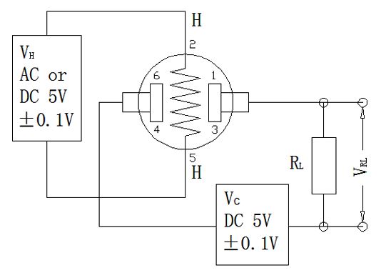 VHは、センサーに特定の動作温度を提供するためのもので、直流電源または交流電源が使用できます。VRLは、センサーに直列接続された負荷抵抗(RL)にかかる電圧です。