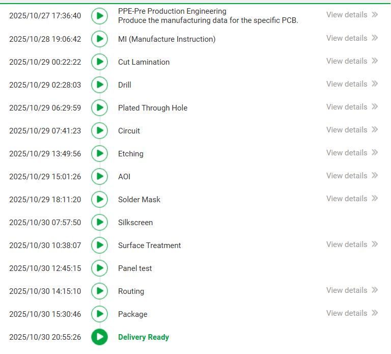 ガーバーデータの送信をWEBサイト上で無事に完了するとすぐに、データに問題が無いかどうか、レビューが開始されます。今回の基板は単品基板でかつ配線も複雑では無いからなのか、あっけなく5分ぐらいでレビューは終了。もし基板データに間違いがあった場合は、この時点でやり直すことができます。その後、支払いを済ませれば、いよいよガーバーデータの詳細確認と製造用データの作成工程に移ります。